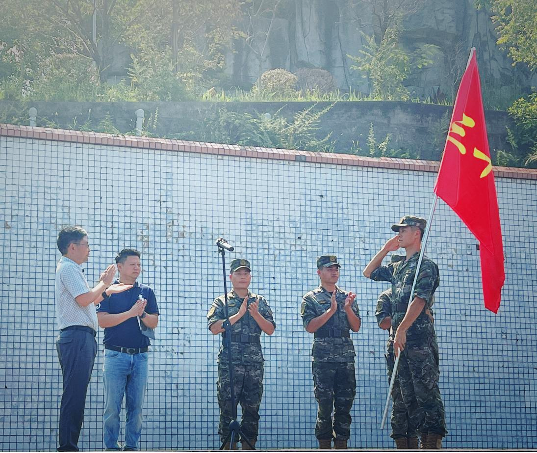 最后,学院院长张应良向连长授旗,为期一周的军训正式拉开帷幕。