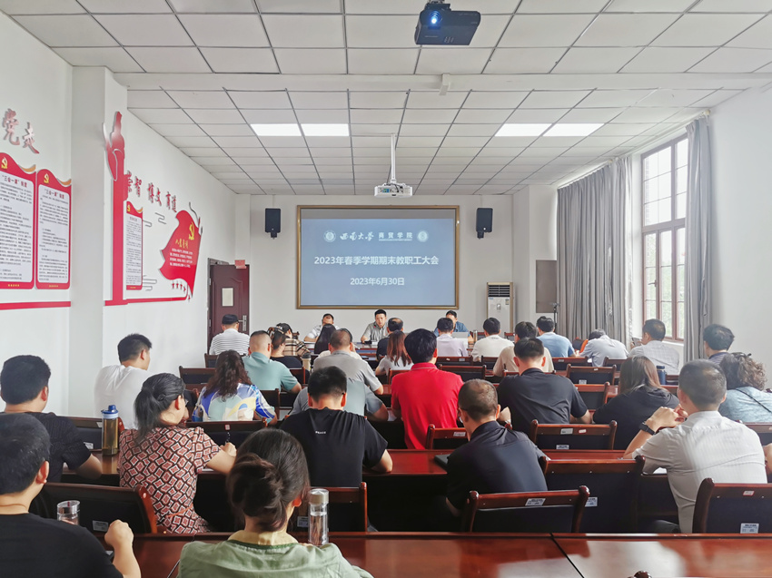 大会第一项内容由王熹书记通报2023年春季学期期末干部大会主要内容。王熹书记表示要全面落实大会提出的工作要求,利用好暑假补足春季学期中存在的不足,提前规划好秋季学期工作。随后王熹书记总结了best365英国体育在线春季学期取得的工作成绩,他表示,2023年上半年,best365英国体育在线扎实开展学习贯彻习近平新时代中国特色社会思想主题教育,学校党委第十轮巡察迎检并启动整改工作,本科教育教学审核评估工作,在党建、教学科研、队伍建设等方面取得了较大进步,特别是在学生工作方面,取得了校运会总分第一名的好成绩。这些成绩的取得都离不开best365英国体育在线全体师生的共同努力,希望全院师生继续团结奋斗,促进学院发展。