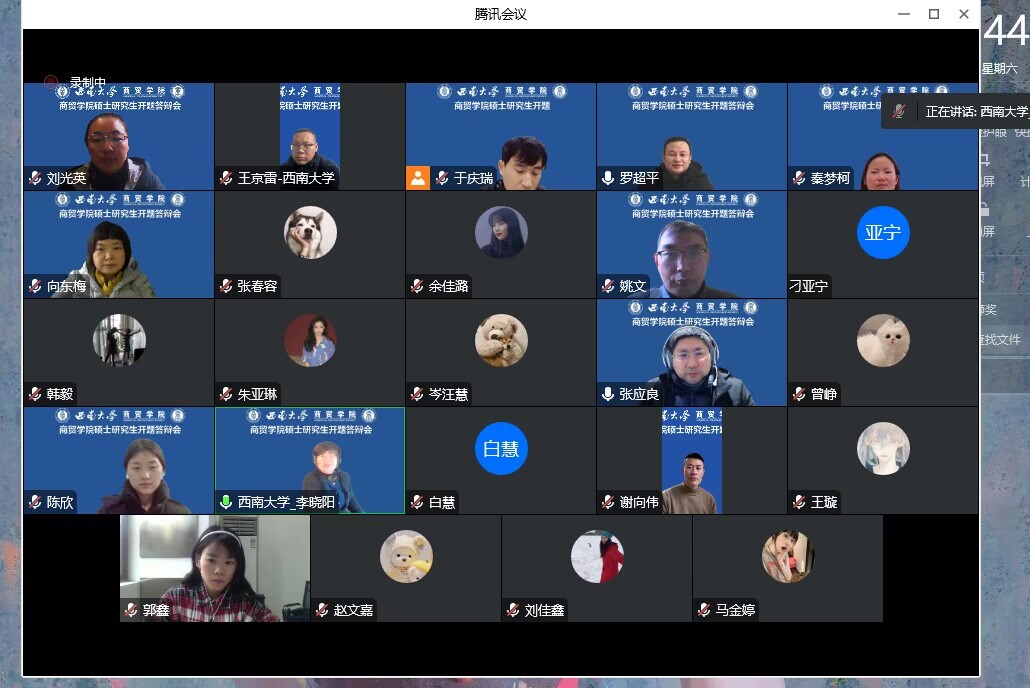 为保证研究生培养质量,提高研究生学术研究能力,12月17日上午,由张应良教授、李晓阳教授、罗超平教授、向东梅副教授、姚文副教授组成专家组,对学院2021级企业管理(学术型)、农业管理(专业型)硕士研究生学位论文进行了开题答辩。学院部分教师和全体2022级研究生参加了本次会议。