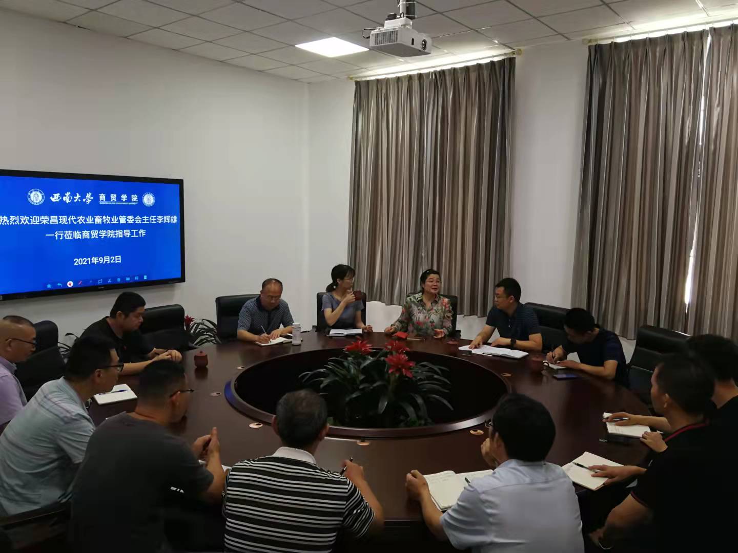 与会人员就合作的相关问题作了充分交流。座谈会为学院与荣昌区现代农业畜牧业管委会深度合作奠定基础,也是学院通过支持产业发展参与乡村振兴的积极探索。