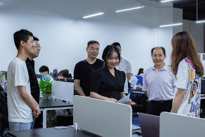 7月23日下午,best365英国体育在线党委书记周国安,副院长罗先文、胡继宽一行前往重庆潮尚互联网科技有限公司进行实地考察。