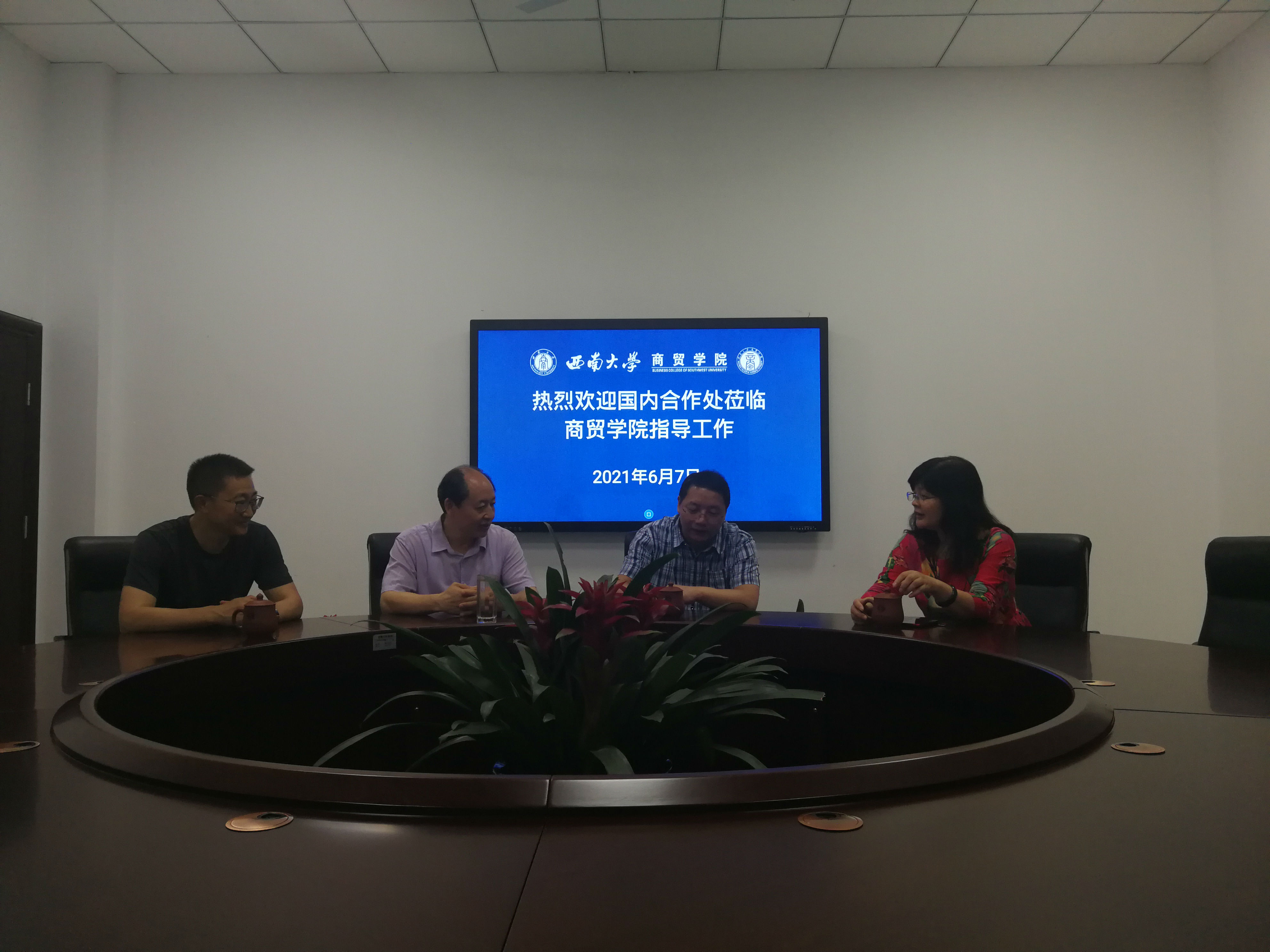 6月7日下午,西南大学国内合作处杨明厚副处长一行在荣昌校区参加会议后,挤出时间赴best365英国体育在线开展工作调研。best365英国体育在线党委书记周国安、院长李晓阳向杨明厚副处长等人汇报了当前学院在国内合作、社会服务工作方面基本情况和未来工作打算。