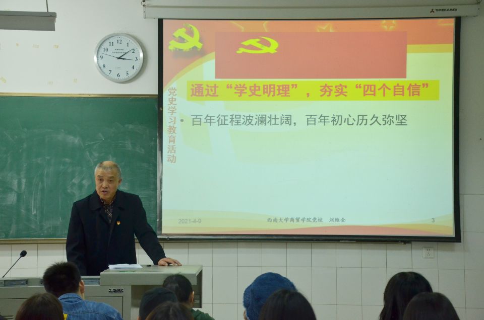 4月9日下午,学生第一党支部全体党员参加了一堂《通过“学史明理”,夯实“四个自信”》的专题党课。学院特别邀请退休老党员刘维全老师为支部授课。