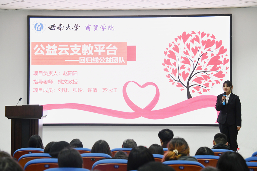 最后,“枫树林”团队获得一等奖,“公益云支教”团队、“可可奈奈”团队获得二等奖,“干饭王中王”团队、“药到病除”团队、“西大校园通”团队获得三等奖。