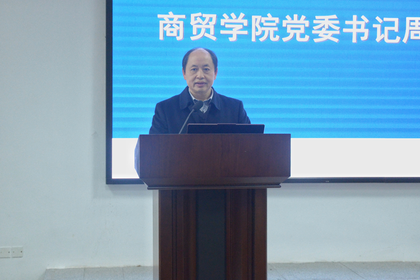 周国安书记在赛前致辞。他强调,同学们要将理论应用于实际生活,不仅要啃透书本更要提高社会实践能力。此外,周书记呼吁同学们积极地参与比赛,真正做到学校积极组织,学生积极参与。