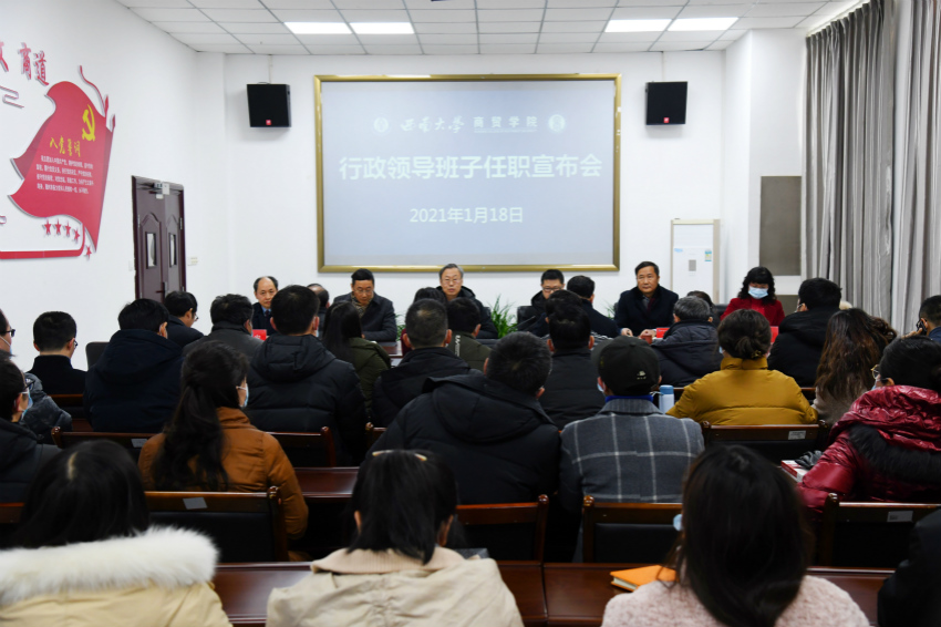 1月18日下午,学院在8401会议室召开全院教职工大会,校党委副书记安春元、党委组织部副部长舒刚在会上宣布了best365英国体育在线行政领导班子任职决定。荣昌校区党工委书记熊海灵、校区管委会主任左福元等领导同志出席了会议,安春元同志主持会议。