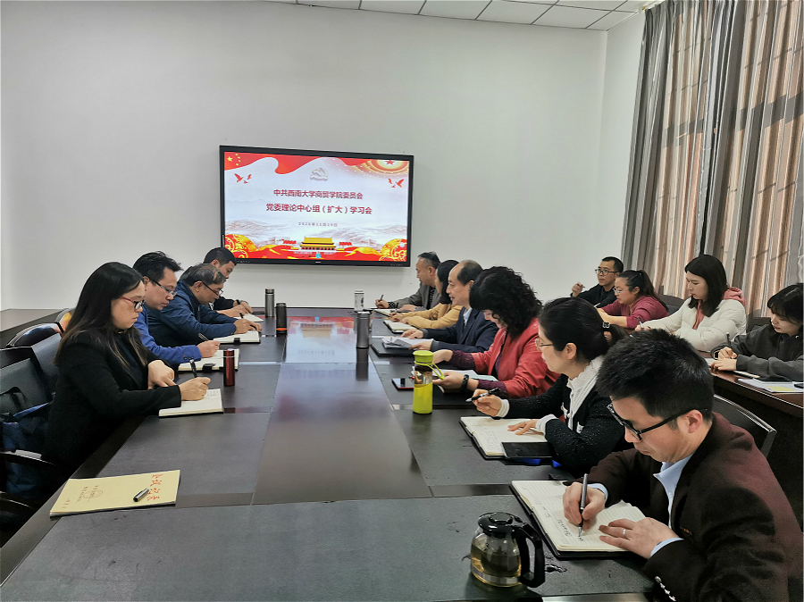 11月19日,学院党委理论中心组在学院8403会议室开展理论学习。中心组成员、党政领导、院长助理、组织员、工会主席、团委书记、系主任、党支部书记参会。会议由学院党委书记周国安主持。