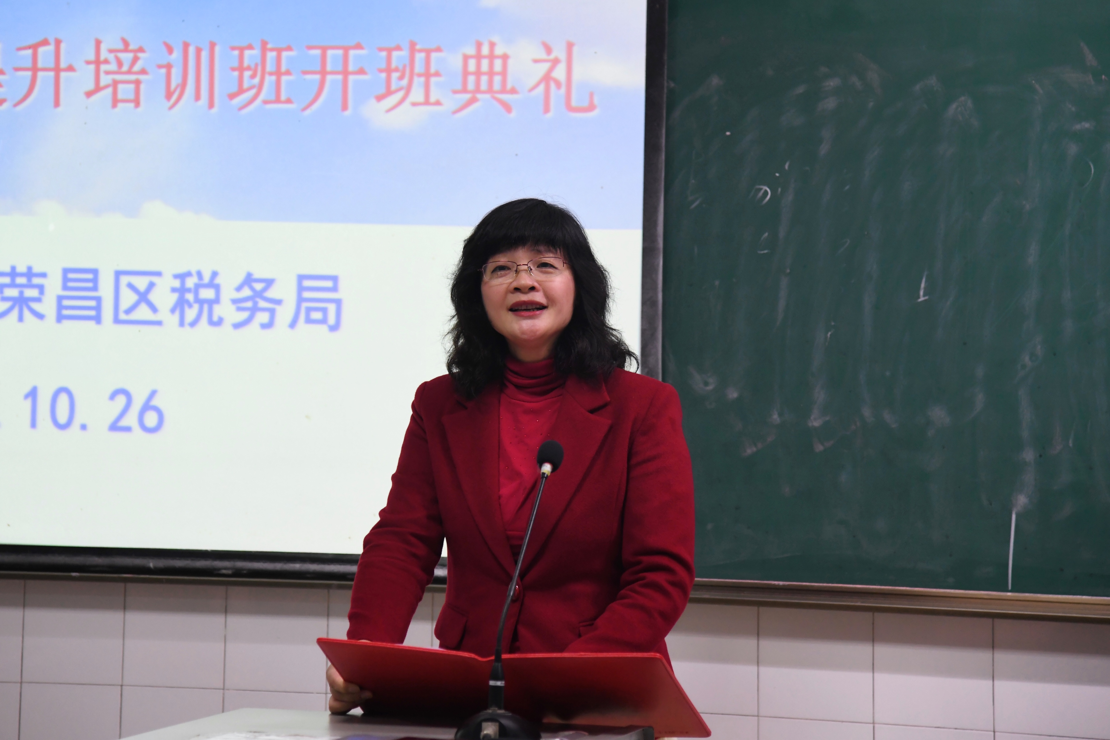 荣昌区税务局彭先菊副局长在讲话中衷心感谢best365英国体育在线对此次培训班的重视和所做的精心准备。她要求全体干部学员明确学习目标、拓展学习渠道、遵守学习纪律。希望各位学员学有所思,学有所悟,学有所得,学有所获。