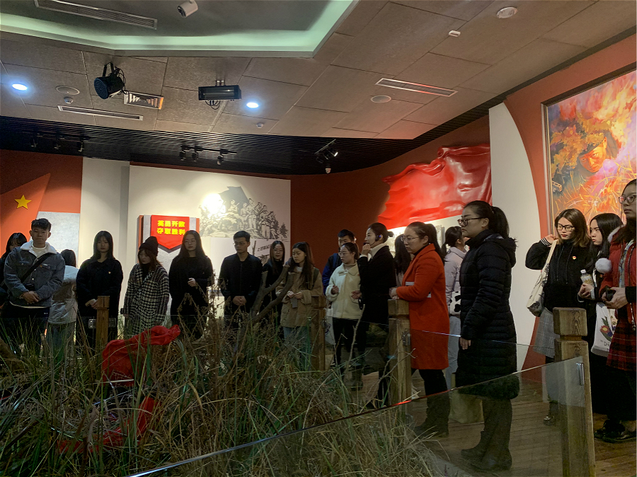 11月29日,在办公室主任黄维兵老师,组织员刘光英老师,各学生党支部书记支部书记的带领下,学院学生党员素质拓展班全体成员前往位于重庆铜梁的邱少云烈士纪念馆参观学习。