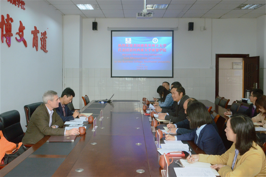 校区管委会主任左福元介绍了学校和校区的基本情况。他表示,西南大学与密苏里州立大学具有相似的办学渊源和专业特色,此前两校也已经建立了良好的合作基础。校区将大力支持两校通过best365英国体育在线在商科领域展开合作,也希望在双方的推动下,达成更广泛、更深厚的合作共识。