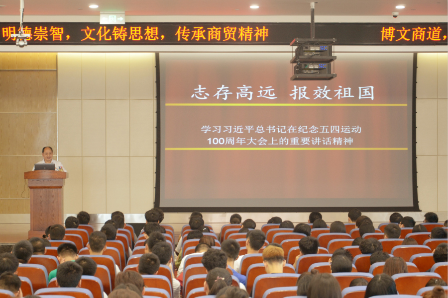 10日下午,学院党委书记周国安带领新生们学习了习近平总书记在纪念五四运动100周年上的重要讲话,号召同学们坚定理想信念,不负时代重托。周书记还就课堂文明、寝室文明、食堂文明以及网络文明等对新生们展开了教育,希望新生们在今后的大学生活中,做到积极向上、文明知礼。