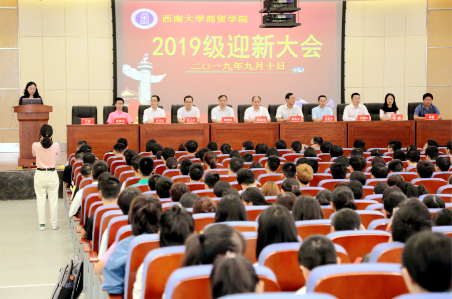 乘风商贸启新程,春华秋实展宏图,学院迎来了新的青春力量。9月10日上午,学院2019级迎新大会在7B201报告厅隆重举行。学院党委书记周国安,院长熊海灵,党委副书记、纪委书记兰英,副院长胡继宽及各系、中心、部门负责人出席了大会。2019级全体新生和新生班主任参加大会,大会由兰英副书记主持。