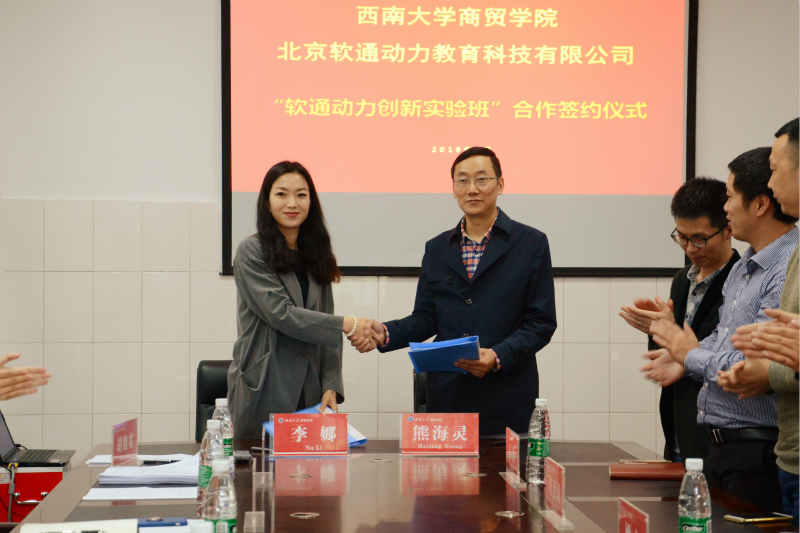 最后,熊海灵院长与李娜女士代表学院与企业正式签订合作协议,双方将组织开展系列交流合作,“软通动力创新实验班”正式开班。
