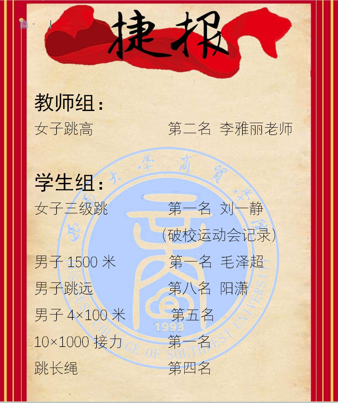 本届校运会4月19日best365英国体育在线学生获奖情况如下: