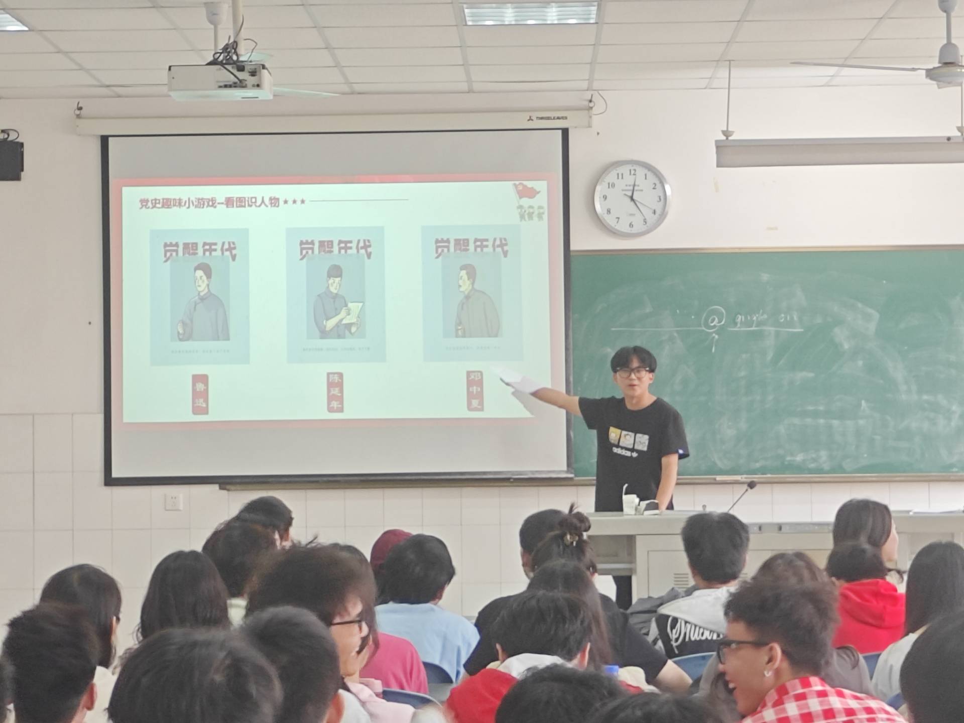 红色游戏,识曲识人识党恩 “没有共产党,就没有新中国。”在红色歌曲识曲环节,团员青年们认真聆听、积极抢答,一首首红色歌曲铿锵有力、斗志昂扬,把青年们带进难忘的历史岁月。看图识人环节,党员、团员青年们根据图片内容和人物特点进行猜测,在活跃气氛中重温红色故事、弘扬红色文化、传承红色基因。