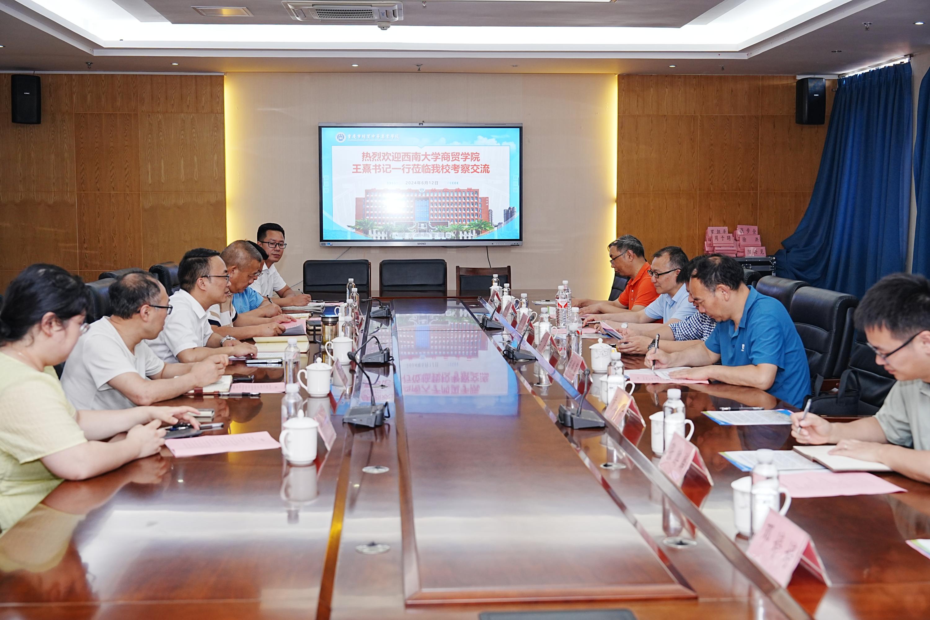 为进一步推动校地合作、挖掘校友资源,6月12日下午,best365英国体育在线党委书记王熹带队前往重庆市经贸中等专业学校考察交流。best365英国体育在线副院长胡继宽,副院长韩毅,国际经济与贸易系主任姚文,信息管理与信息系统系主任张麒麟参加考察交流。