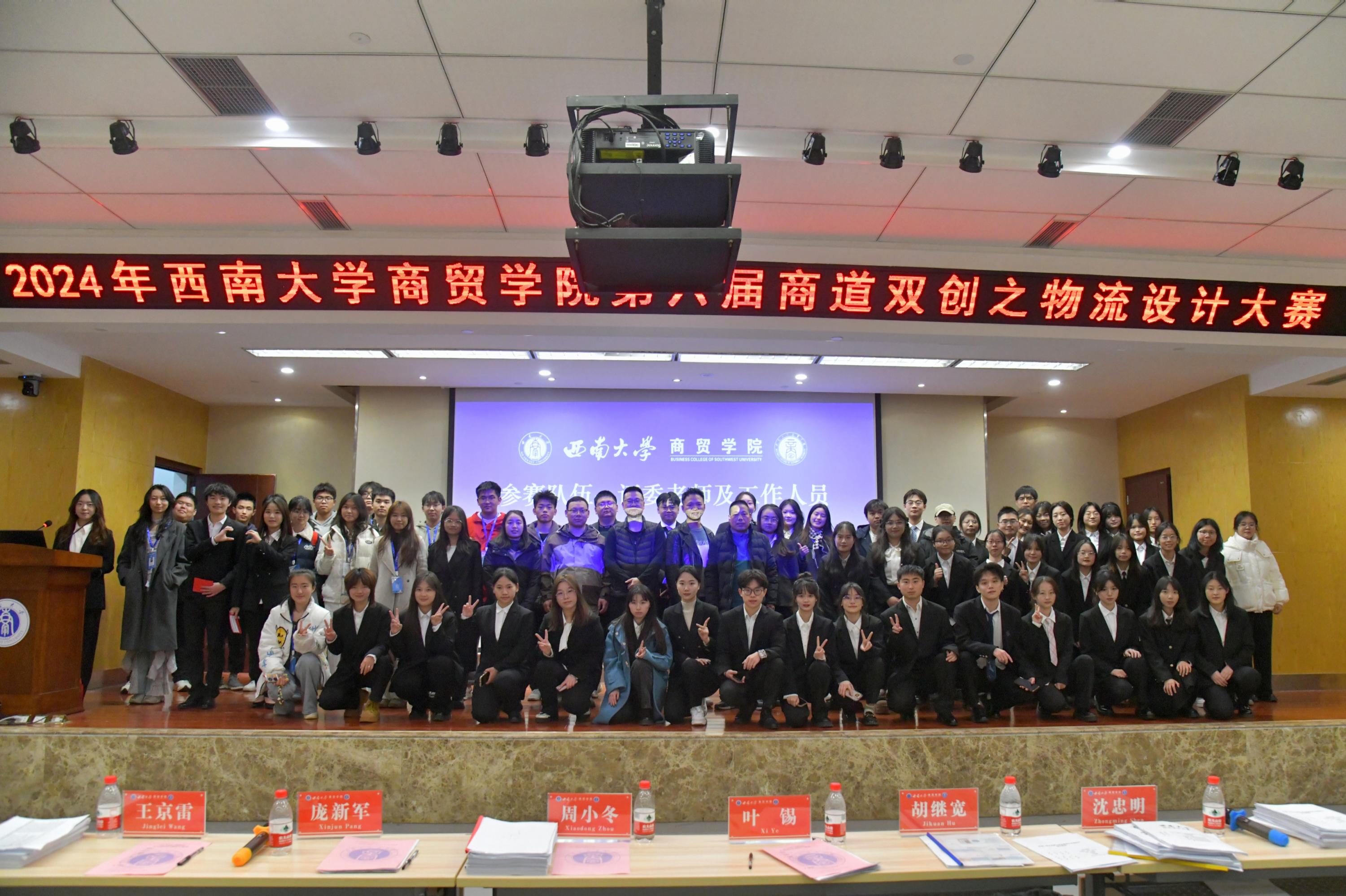 学院副院长胡继宽,重庆市荣昌区工商联第十二届常委、重庆市荣昌区浙江商会党支部书记 秘书长、重庆市荣昌区商贸物流商会常务副会长兼秘书长叶锡,顺丰集团荣昌物流合伙人、顺心物流投资人周小冬,物流管理系主任庞新军,市场营销系主任沈忠明,教师王京雷、张建锋、陈楠等作为评委出席比赛。