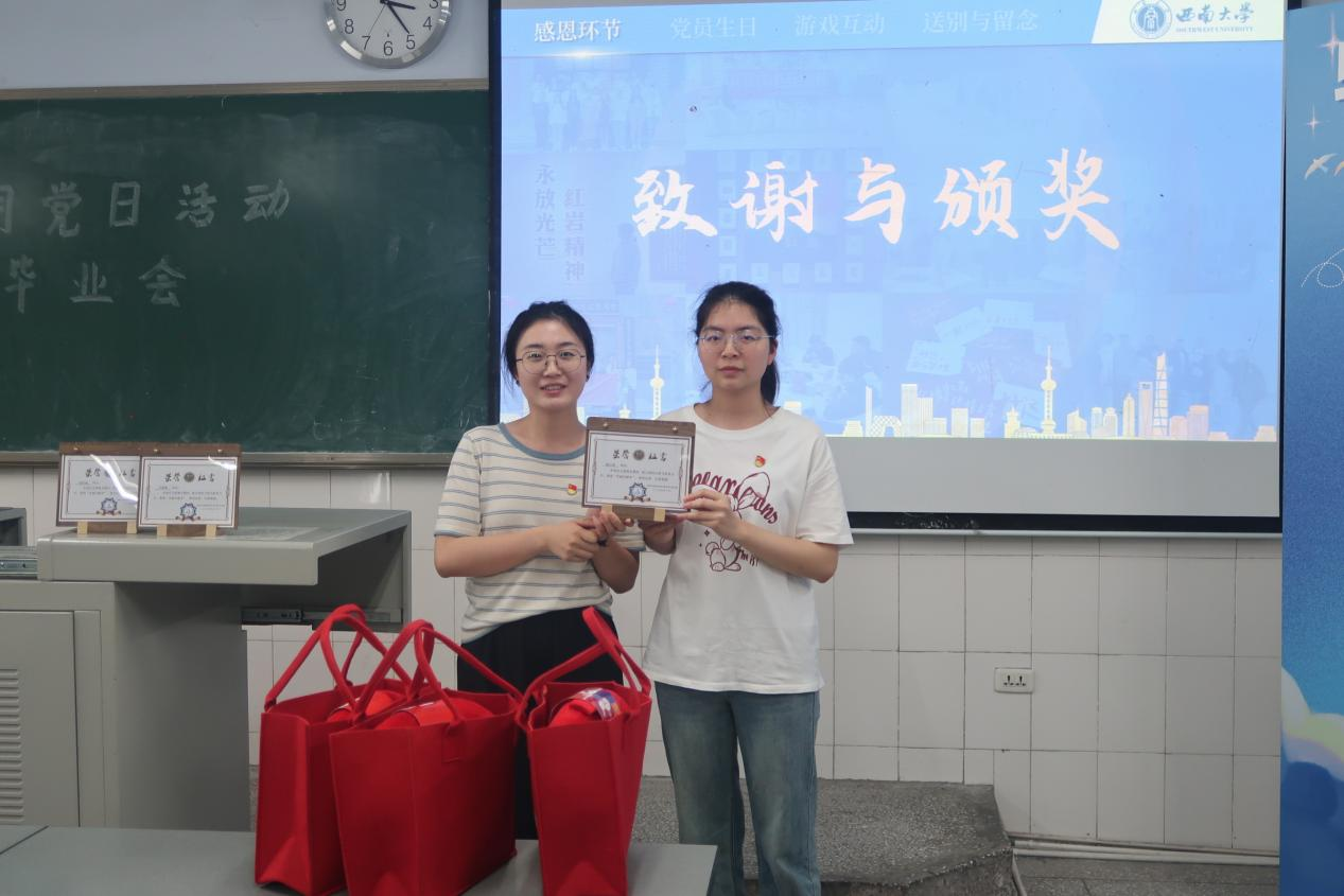 陶春梅同志向为党支部建设辛勤付出的同志颁发支部特别设计的荣誉证书及纪念品。