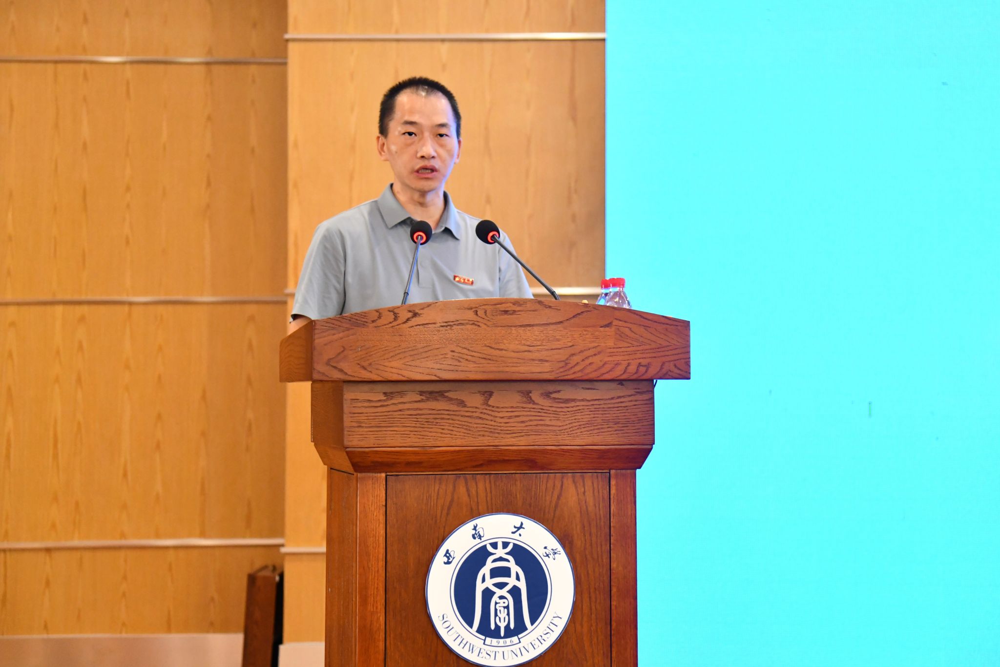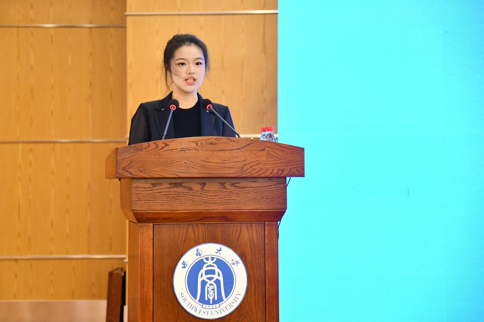 新生代表许欣妍代表新生表态,将珍惜学习机会,尽快适应大学生活,以优异成绩回报师长期望,在西南大学这片热土上用汗水浇灌青春、以实干笃定前行。