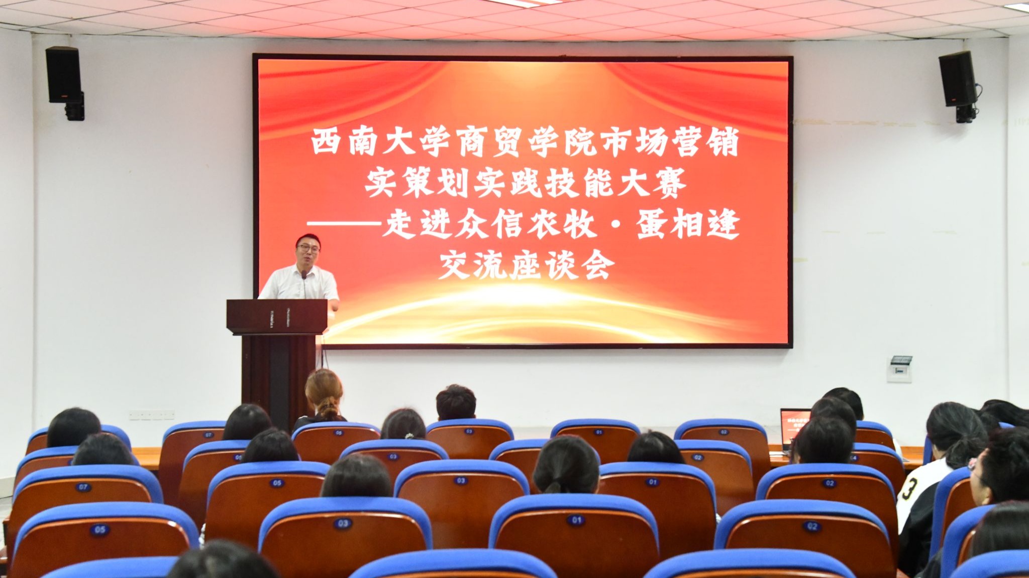 为将营销理论映射到真实情境,落实“走进企业、真题真做”理念,10月12日上午,学院市场营销实践技能大赛参赛队员赴重庆众信农牧集团,开展“商道双创计划”之市场营销策划大赛——“蛋相逢”品牌鸡蛋深度增长营销策划第一阶段专项调研活动。重庆众信集团董事长兼总经理程静全程陪同。