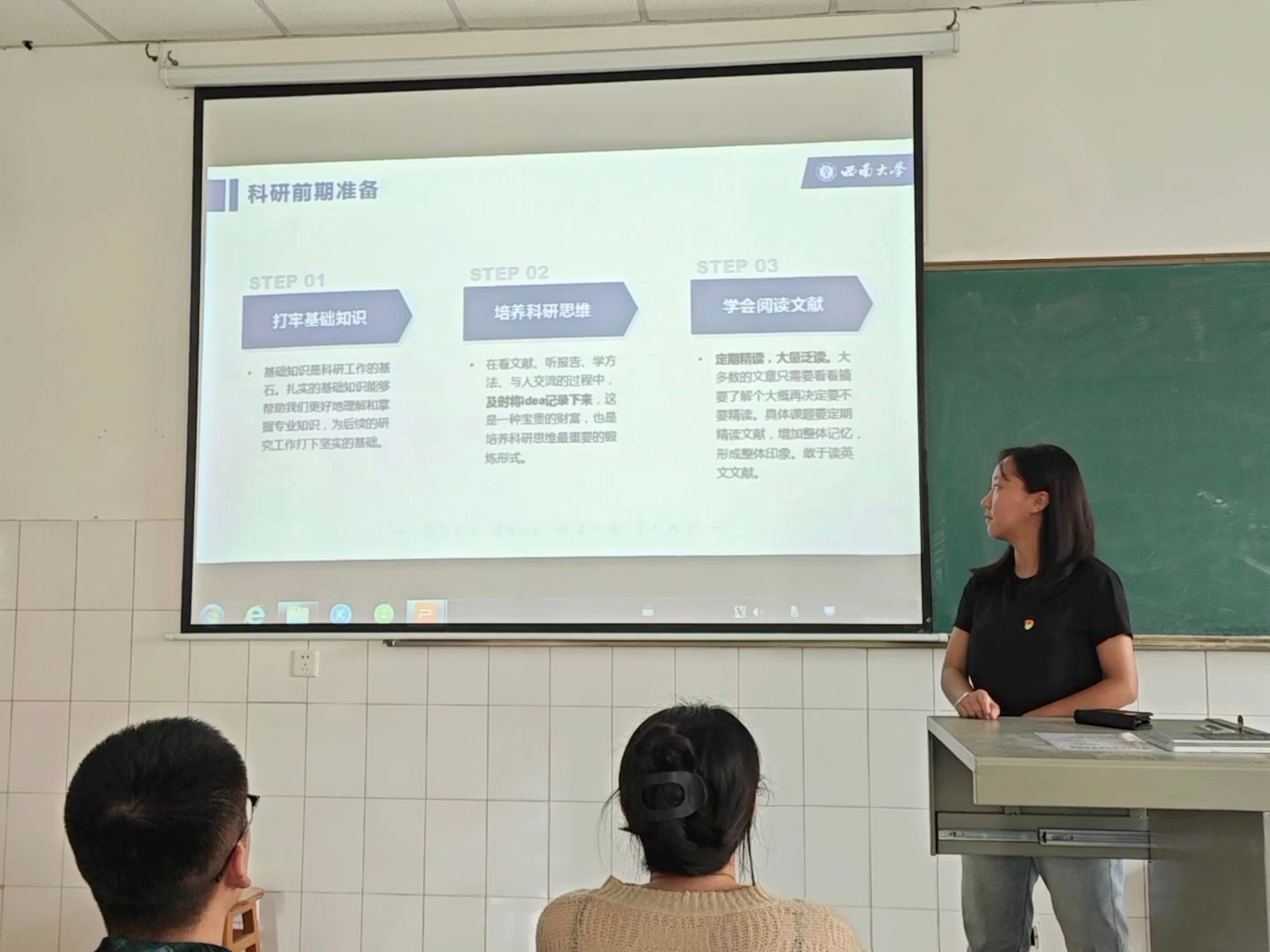 学术交流岗是学术思想的“传播者”,更是学科前沿的“瞭望者”。两位同志分别从科研成长路径与学科发展动态出发,为同学们搭建起连接理论与实践、当下与未来的桥梁。王煜霞同志以“时间节点-核心能力-投稿心态”梳理科研路径、明确各阶段目标,通过交流激发热情、以文献与工具锤炼能力,精准投稿并保持“快乐科研”心态。薛江焙同志围绕“新方向・新成果・新机遇”,分享管科与图情领域动态,推荐重要学术会议,指出AI将推动学科融合,为同学们搭建了对接前沿的平台。