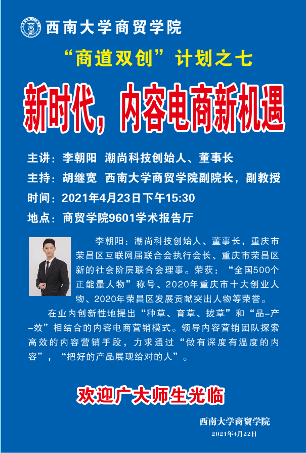 商道双创”系列活动(讲座):新时代,内容电商新机遇