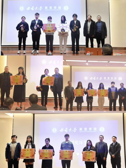 最后,沈忠明老师对各小组的策划方案及展示进行了点评,肯定了同学们的创意和努力,同时也指出了可以改进的地方,并从不同角度对同学们的策划方案进行了深入剖析和点评总结,为同学们提供了宝贵的建议和指导。竞赛评出了一、二、三等奖,评委嘉宾为获奖队伍进行颁奖并合影留念。
