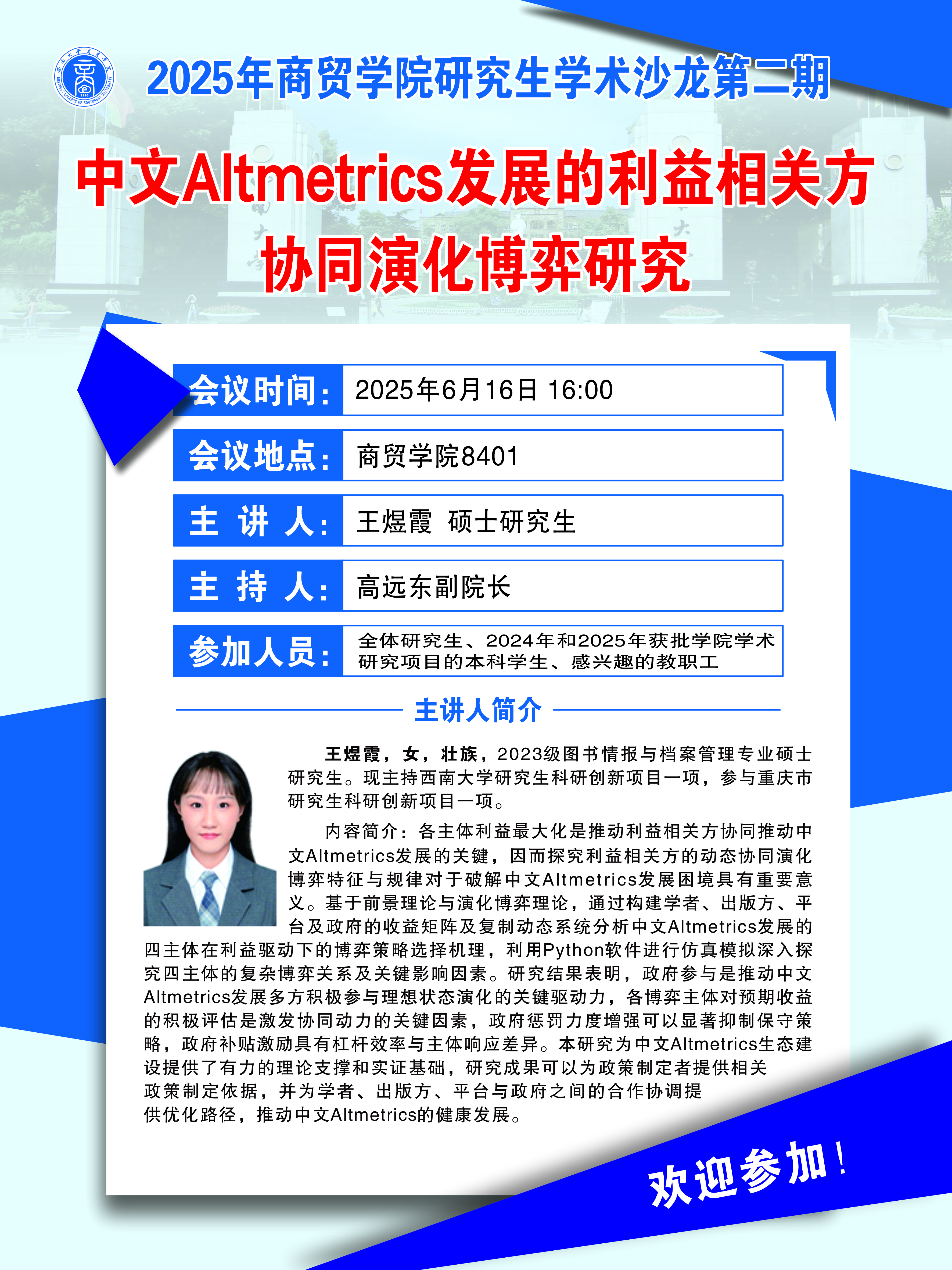 学术沙龙:中文Altmetrics发展的利益相关方协同演化博弈研究