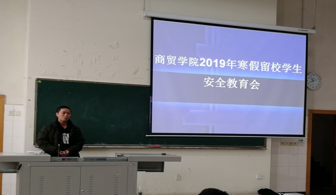 1月11日上午,best365英国体育在线2019年寒假留校学生安全教育大会在2711举行。院团委书记廖鹏、辅导员谭觅及寒假留校学生参加了本次安全教育大会。