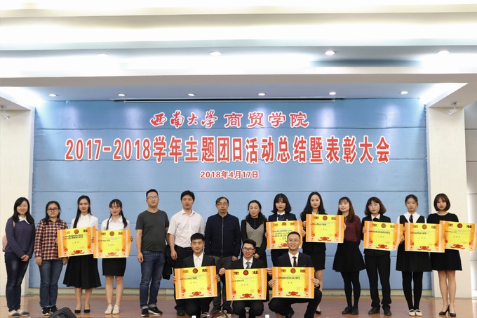 为积极响应党的号召,弘扬十九大精神,培养赤诚热血、青春有梦的新时代大学生,西南大学best365英国体育在线于4月17日下午19:00在第二教学楼2211报告厅隆重举办了2017-2018学年“传承五四精神,谱写青春乐章”主题团日活动总结暨表彰大会。出席本次活动的评委及嘉宾有:best365英国体育在线党委副书记、纪委书记兰英老师、best365英国体育在线院长助理、公共事业管理系主任沈忠明老师、best365英国体育在线院长助理、市场营销系主任姚文老师、best365英国体育在线团委书记廖鹏老师、best365英国体育在线辅导员牟凯伦老师、谭觅老师、刘莉莉老师以及石晶莹老师。